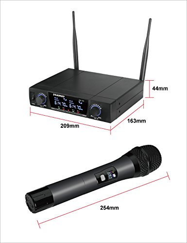 Item Weight:3.22 pounds Package Dimensions:14.5 x 10.7 x 2.4 inches Shipping Weight:3.22 pounds (View shipping rates and policies) ASIN:B06ZXSHNT2 Item model number:V2 Batteries:4 AA batteries required. Customer Reviews:3.3 out of 5 stars 9 customer reviews 3.3 out of 5 stars Best Sellers Rank:#26,572 in Musical Instruments (See Top 100 in Musical Instruments) #241 in Musical Instruments > Live Sound & Stage > Microphones > Wireless Microphones & Systems > Handheld Wireless Microphones #9,208 in Musical Instruments > Recording Equipment Date first listed on Amazon:August 2, 2017