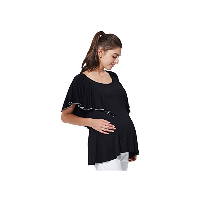 스위트마미 (Sweet Mommy) 프릴 슬리브 반소매 수유 톱스 수유복 / 마타니티 L 블랙