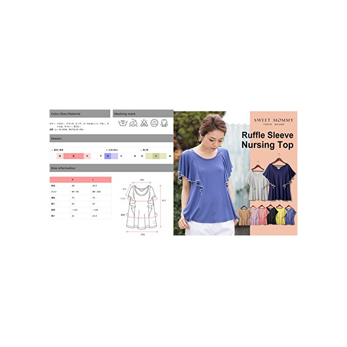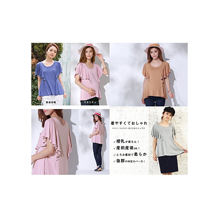 원본상품명: Sweet Mommy マタニティトップス 授乳口付き 授乳服 Tシャツ ラッフルスリ?ブ とろみ授乳カットソ? 長め丈 きれいめ オフィス 春 夏 半袖 産前産後 大きいサイズ