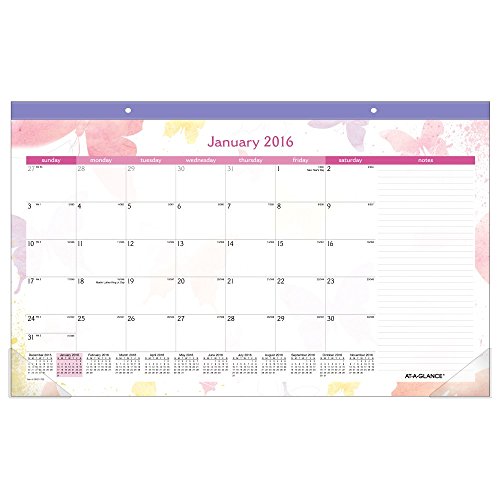 AT-A-GLANCE Monthly Compact Desk Pad Calendar 2016, Watercolors, 17-3/4 x 9-7/8 Inches (SK91-705)