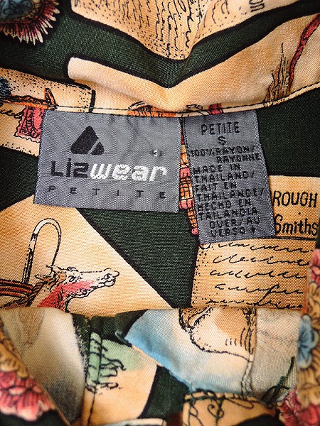 Ladies ブランドLiz Wear リズウェア カラー緑・カラフル メール便可 コンディション★★★ 素材レーヨン 表記サイズS スタッフコメント胸に小さな穴が有ります。 実寸サイズ 着丈 65 cm 身幅 52 cm 肩幅 47 cm 袖丈 50 cm ※ウエスト・ヒップ以外は平置き採寸【code】#d