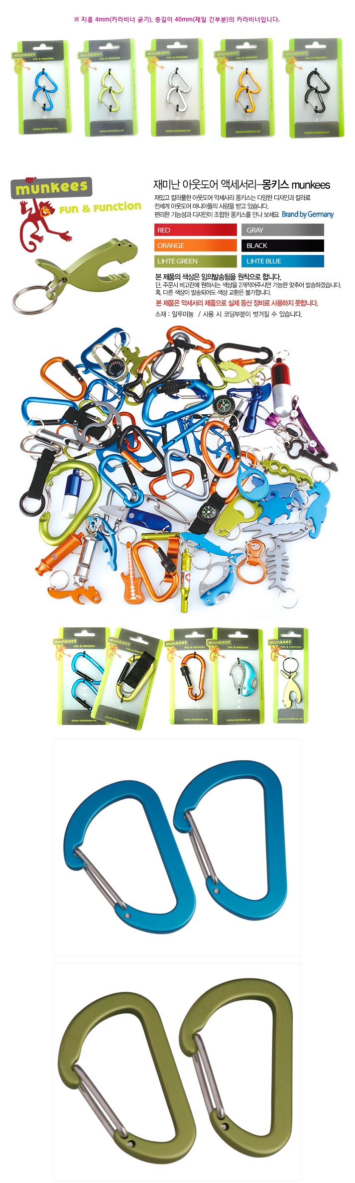 상품명 : 평면 카라비너 와이어게이트 Ø4x40mm -2개 (3251)