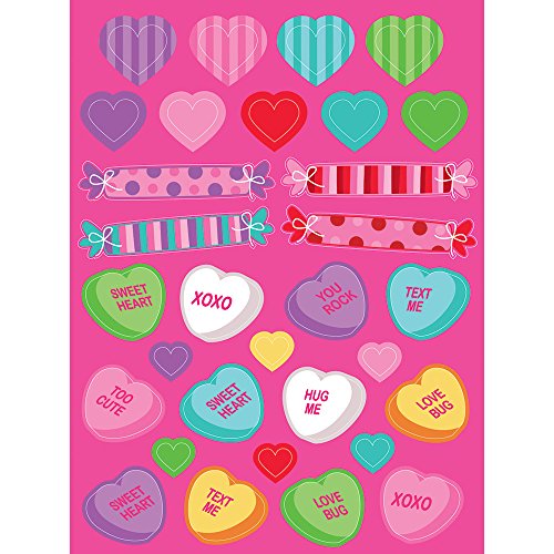 Creative Converting 319430 48 Count Hearts and Candies Sticker Sheets, Multicolor
