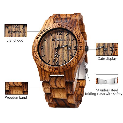 GBlife Bewell ZS - W086B Mens Wooden Watch Analog Quartz Lightweight Handmade Wood Wrist Watch