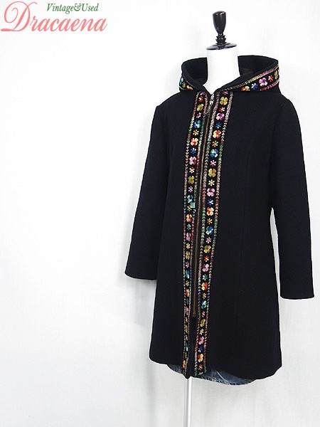 Ladies ブランド- カラー黒 メール便不可 コンディション★★★ 素材- 表記サイズ- スタッフコメント裏地あり。タグ無し。右側刺しゅうテープ、中央付近刺しゅうにほつれあり。 実寸サイズ 着丈 86.5 cm 身幅 50 cm 肩幅 41.5 cm 袖丈 54 cm ※ウエスト・ヒップ以外は平置き採寸