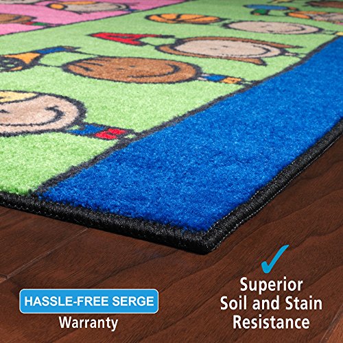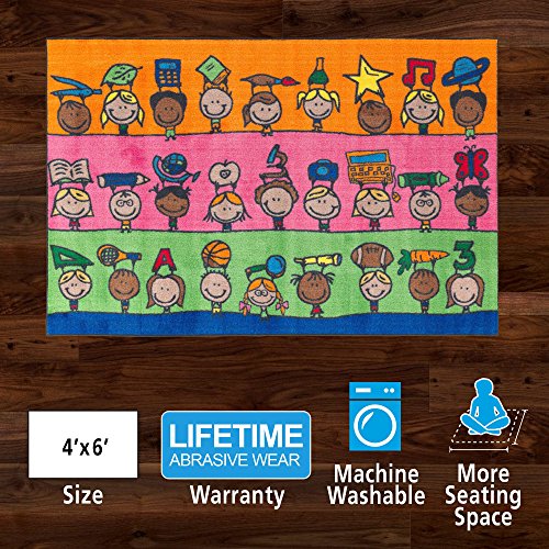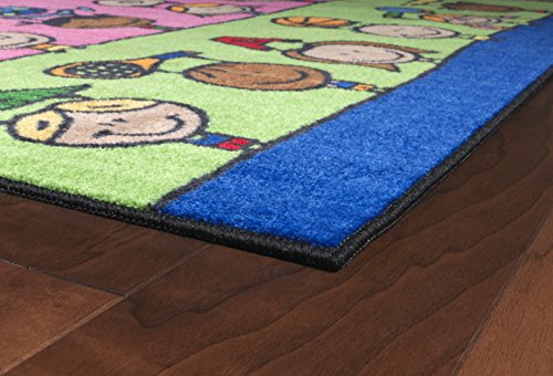 Explore health and wellness as well as STEAM subjects with cheerful friends who showcase all the fun ways to learn and grow! Brightens any classroom and because of its durability, can also be hung on the wall as a visual aid. This rug is part of the Easy Cost-Easy Care washable collection.