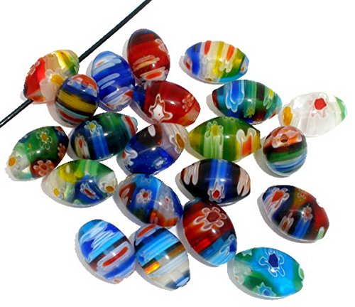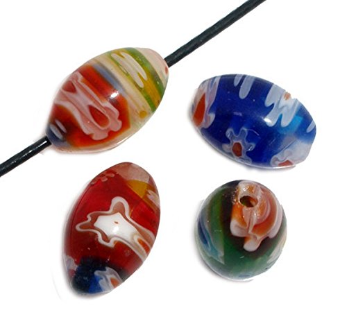 Housweety 50 Mixed Millefiori Glass Lampwork Oval Spacer Bead