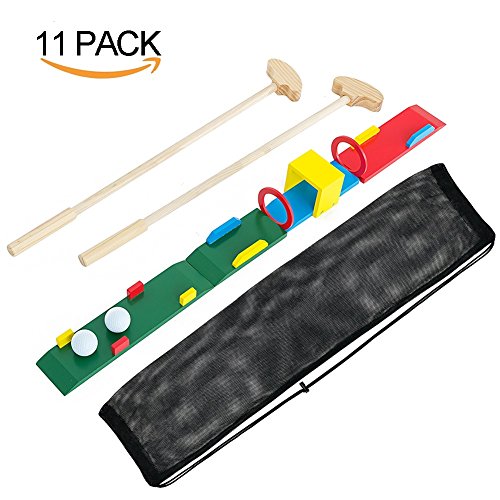 The Wooden? Golf Full set is made from eco-friendly material because the waste is minimized and fewer trees are reclaimed. The less energy used to produce golf set and ultimately reduces our environmental impact. ? NEOWOWS Wooden Mini Toy Golf Set Golf is a sport for all ages, the rules are simple and can stimulate mental development. While playing children learn to abide by the rules, develop their team spirit, and enhance their social skills. Batting position keep your feet and shoulders flush, holding the club with both hands, lowering the club placed between the legs and then swing, and then hit the swing, let the ball through the track on the round frame. The Mini Golf-Full Set consists of 2 X Wooden Golf?clubs 2 X Golf?balls 4?X Different types of challenging tracks 2?X Holes 1 X Carrying Bag This Golf? Set includes a heavy duty, weather resistant carrying bag with straps for easy transport and storage. Golf is the ultimate leisure game and can be played almost anywhere. Perfect for a day at the park, a backyard get-together, or any party! Classic Game for All Ages Golf is a classic game that people of all ages truly enjoy- it promotes various coordination skills and encourages you to polish up your teamwork skills, too! The wooden Golf Set provides entertainment for your family and friends while creating memories that will last a lifetime. 0 |