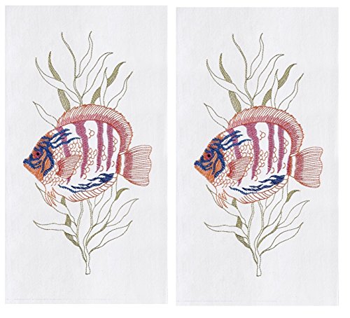 2 Flour Sack Kitchen Dishtowels, Embroidered Tropical Fish Design