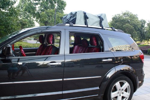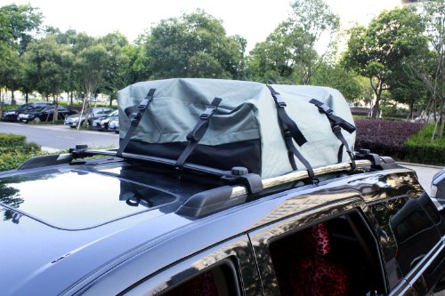The carrier provides additional space to any vehicle with roof rack side rails, crossbars or cargo baskets. Easily set up and attaches securely with clips and straps. As the carrier is frame-less, it easily folds up when not in use. Stowing gear in this carrier may provide much needed elbow room, can make your rear view mirror usable again, or if nothing else, let you cram even more stuff. Great accessory for camping, road trips, and sporting equipment. Opens with Dual Zippers, and attaches with 8 adjustable straps (2 per side).Feature
