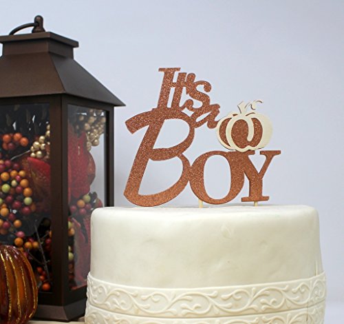 All About Details Copper Pumpkin Theme It's A Boy Cake Topper