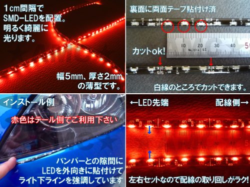 AMC side-emitting LED tape 30cm30 series LED red left and right 2 pcs SMD high-brightness red waterproof