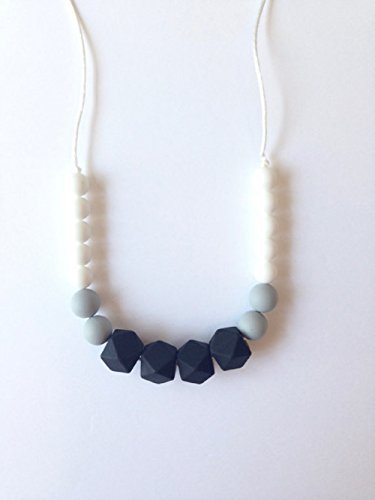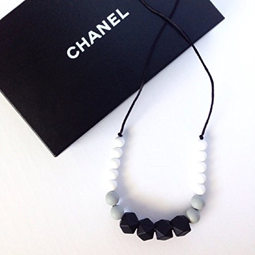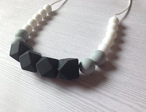 Eco-Friendly Silicone Teething Necklace, Geometric Black Grey & White, BPA-Free
