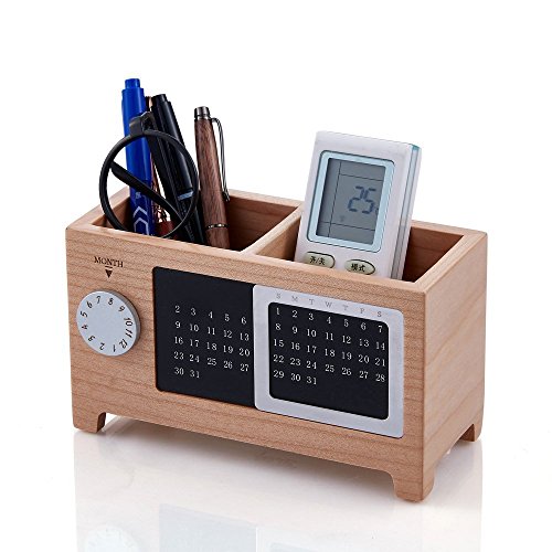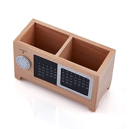Artinova Wooden Office Desk Organizer Pen and Pencil Holder Stationery Storage Box with Calendar for the Desk ARTA-0006M