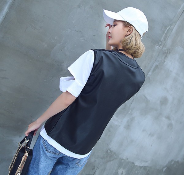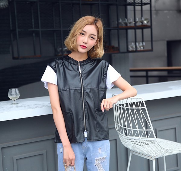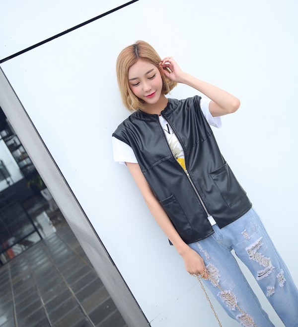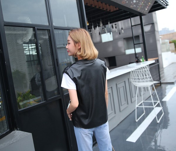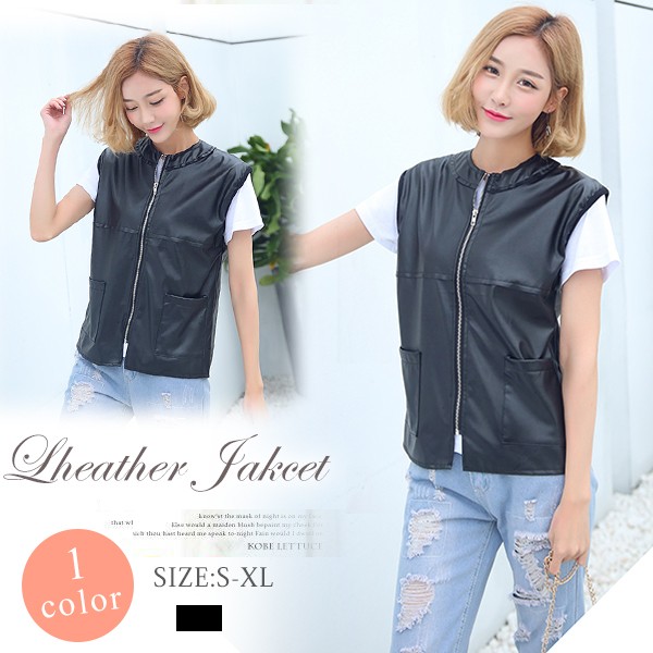 デイリーに活躍してくれそうなアイテム☆ライダースタイプの合皮ベスト!スリーブレスはハードになり過ぎないし重ね着コーデにぴったり?軽くてソフトなPUジャケットは着心地よし!本格的なレザーベストで着こなしにスパイスをプラスしてみて!(注意事項)※撮影時のライティング、ご覧になっているモニター?PC環境により実際の商品と色味が異なって見える場合がございます。※機械による生産過程におきまして、どうしても生地を織る際の糸の継ぎ目や多少のほつれ、または色ムラなどが生じている場合がございます。■状態:新品未使用■透け感:なし■素材:PU■カラー:ブラック■サイズ:S M L XLS 着丈58cm バスト96cm 肩幅39cm M 着丈59cm バスト98cm 肩幅40cmL 着丈60cm バスト100cm 肩幅41cmXL 着丈61cm バスト102cm 肩幅42cm
