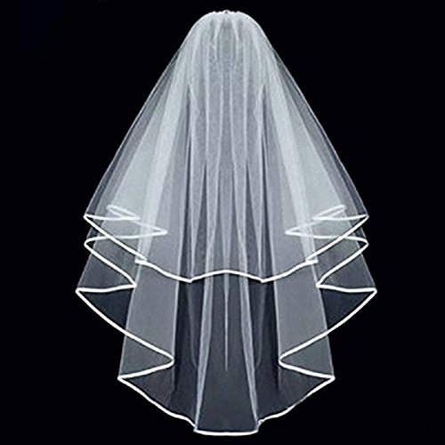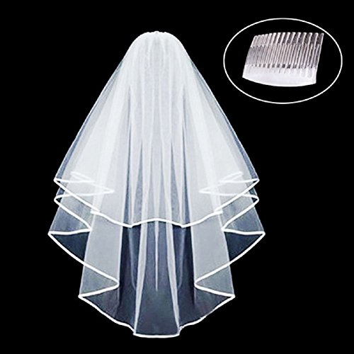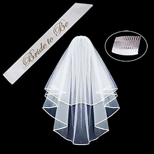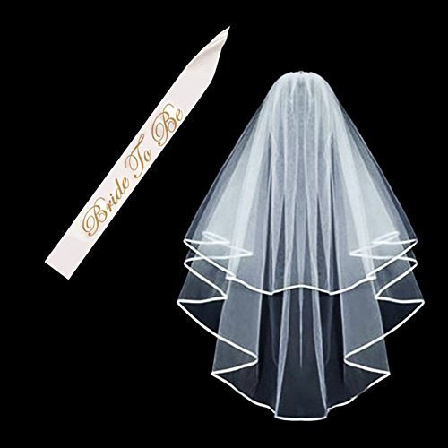 White Double Ribbon Edge Center Cascade Bridal Wedding Veil with Comb& Bride To Be Satin Sash- Bachelorette Party Decorations Supplies