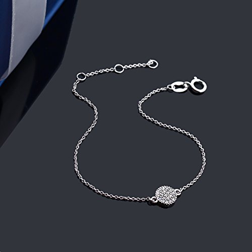 BRACELET MEASUREMENT - 5": Long + 1" extender; DISK MEASUREMENT - 6.35 MM; Pave Diamond Disk Suspended on Cable Chain Bracelet