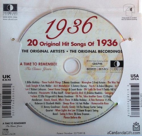 CDCard Company 1936 - The Classic Years CD - Birthday Card CDC1701574