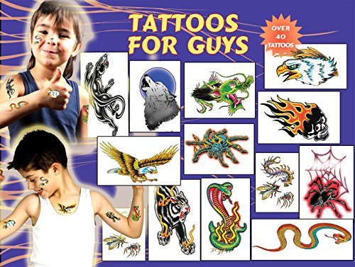 -. Feature : Package includes a selection of over 40 large,long lasting tattoos for boys. / Premium Quality, Made in the USA / 100% Waterproof and long lasting....up to 5 days, even while swimming or bathing / easy to apply in just 10 seconds with water, easy to remove with rubbing alcohol or baby oil. / Great for parties, gifts or party favors/Supplies.