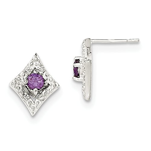 ICECARATS DESIGNER JEWELRY 925 STERLING SILVER PURPLE WHITE CUBIC ZIRCONIA CZ POST STUD BALL BUTTON STUD EARRINGS