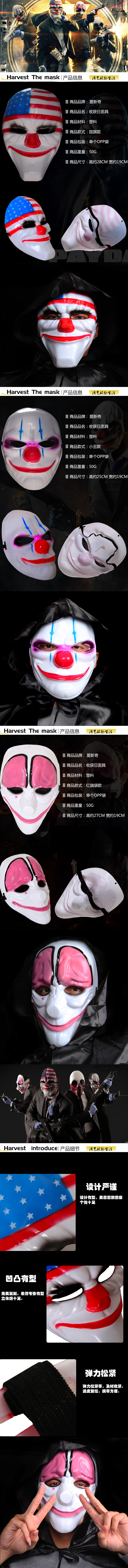 收获日2派对面具 小丑搞笑面具 恐怖面具 国旗面具 男女