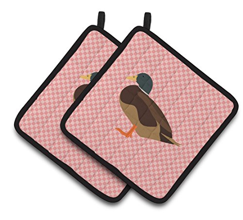 Caroline's Treasures BB7867PTHD Silver Bantam Duck Pink Check Decorated Pot Holder, 7.5" x 7.5", Multicolor