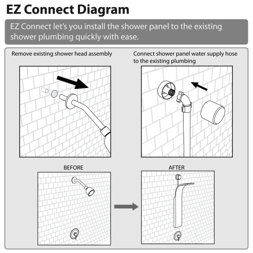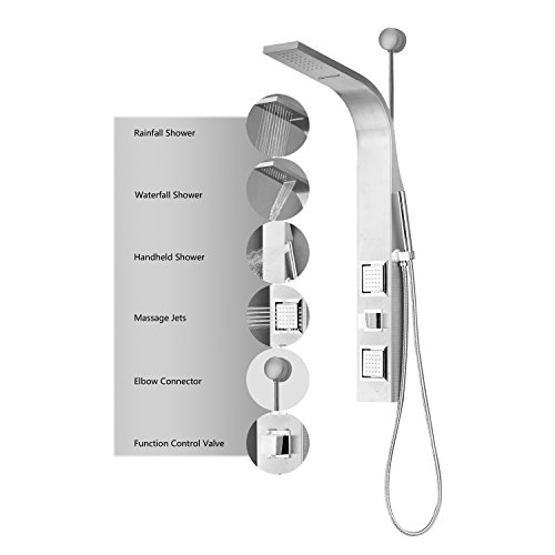 Decor Star 006-SS 41" EZ-Connect Stainless Steel Rainfall Waterfall Shower Panel Rain Massage System Faucet with Jets & Hand Shower