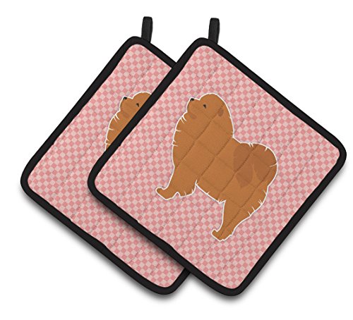 Caroline's Treasures Chow Checkerboard Pink Pair of Pot Holders BB3651PTHD, 7.5HX7.5W, Multicolor
