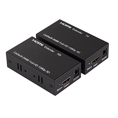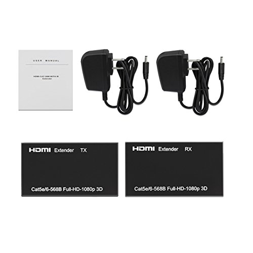 Specifications: Length of CAT-6/CAT-5E cable between Rx and TX:Up to 60 meters HDMI Input: 24/50/60fs/1080p/1080i/720p/576p/576i/480p/480i Support audio input: DTS-HD/Dolby-trueHD/DTS/Dolby-AC3/DSD HDMI Output: 24/50/60fs/1080p/1080i/720p/576p/576i/480p/480i Support audio output: DTS-HD/Dolby-trueHD/DTS/Dolby-AC3/DSD Max bandwidth: 165MHz Max baud rate: 1.65Gbps Input video signal: 0.5~1.5Volts p-p Output DDC signal: 5Volts p-p (TT1L) Input HDMI cable distance: ≤15m AWG26 HDMI standard cable Output HDMI cable distance: ≤20m AWG26 HDMI standard cable TX Max working current: 510mA RX Max working current: 100mA Power adapter format: Input:AC (50HZ, 60HZ) 100V-240V; Output: DC5V/1A Operating Temperature range: (-15 to 55 °C) Operating Humidity range:5 to 90%RH (No Condensation) Dimension (L x W x H): 81x43x22 (mm) TX Weight: 100g RX Weight: 120g