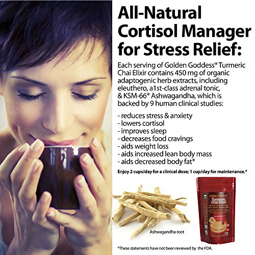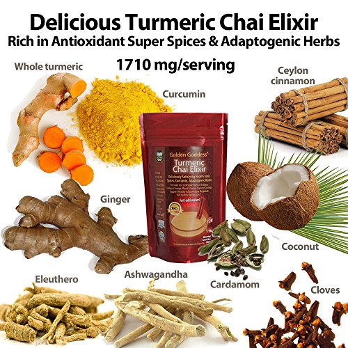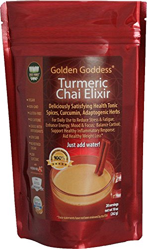 Golden Goddess Turmeric Chai Elixir – Delicious Gourmet Vegan Instant Beverage Mix, Award-Winning Best Supplement for Weight Loss + Stress Relief +...