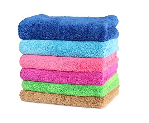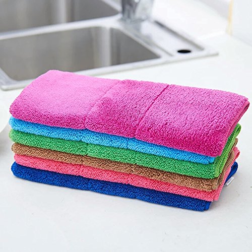 Cindy&Will 6pcs Super Water-absorbing Table Cleaning Duster Soft Microfiber Dish Cloth Rags, Size 1014", Assorted Color