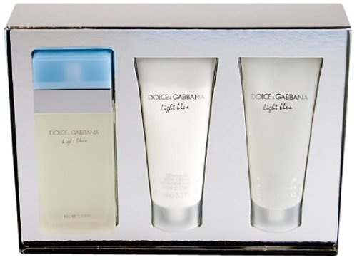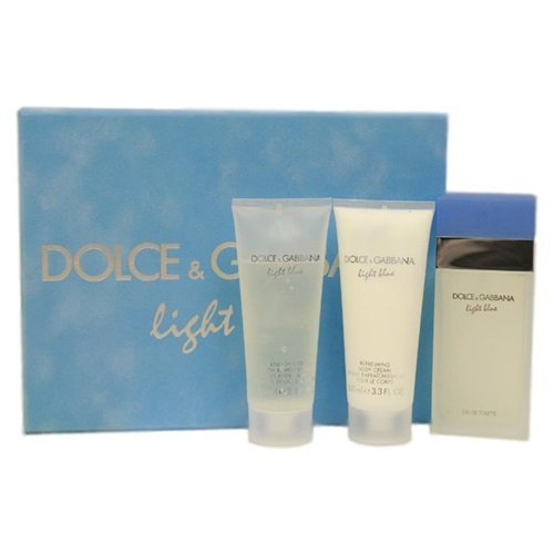 Light Blue by Dolce Gabbana 3 Piece Gift Set, 3.4 oz Eau de Toilette Spray, 3.3 oz Body Cream, 3.3 oz Shower Gel