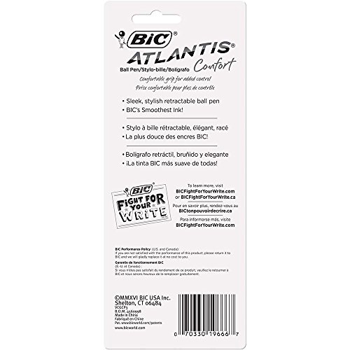 BIC Atlantis Comfort Medium Ballpoint Pen (1.2mm) 3-Pack Blister, Black (VCGCP31-BLK)