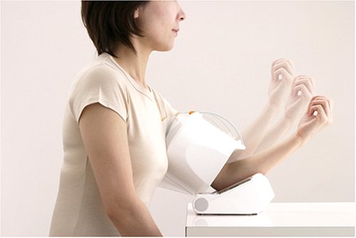 可動式・自動巻きつけ腕帯で正確な測定を実現。ヒジ置き台付き