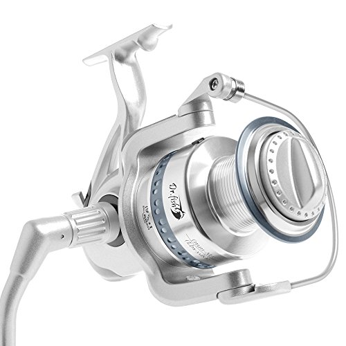 -. Feature : BIG & STRONG! Integrated high density anti-corrosion graphite body ready for long lasting abuse in saltwater. It is a monster battler for all kinds of heavy duty fighting from surf fishing, inshore, pier fishing to offshore fishing, jigging. You could match it up with most medium-heavy rods range from 7 - 14ft on the market depends on your specific fishing species. / 9+1 High precision dust-resistant stainless ball bearings ensure smooth function, consistent fighting and retrieve. Water-sealed rotors and side plates keep every tiny parts in place neatly and minimum the harm to the internal structure. / Wide range drag adjustment, X-strong oversized shaft, compact self-balanced system rotors provide rock steady retrieve when landing big ones. Strong Aluminum Spool is able to hold heavy duty monofilament or braid lines(up to 80 Lb. test) for long distance casting. Tuna, shark, yellow tails, striper bass, king fish, mackerel, spanish, all big ones are within expectation to challenge. / Bail wire made of Piano Wire (High carbon steel with super high strength and elastic limit) last for 100,000 times precise, long distance casting; delivers equalized winding and evenly line lay. / 4.5:1 Geat Ratio, Size 8000, 9000, 10000, 11000 available. More cool features: Foldable Left-right interchange handle, easily fold for storage.Two sections fully connects to each other when engage.Oversize knob made of high quality TPR.