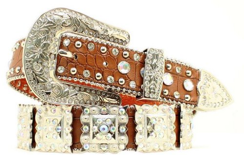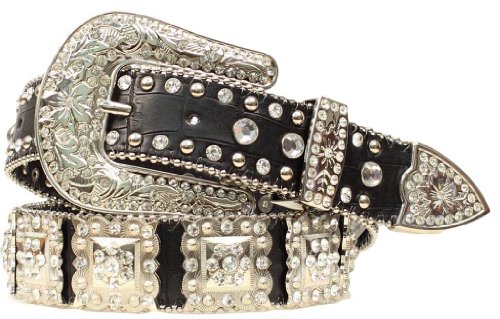 Studio : Nocona Publisher : Nocona Binding : Apparel Product Description Nocona bling belts add a splash of sparkle to your unique cowgirl look - whether on the dance floor or in the rodeo arena Small rhinestone studded belt with large rhinestone concho accents. Western belt buckle boasts floral engravings with rhinestones. Nocona women's leather belt measures 1 1/2" wide. Sizes: S(28-30), M(32-34), L(36-38), XL(40-42). Imported. 0