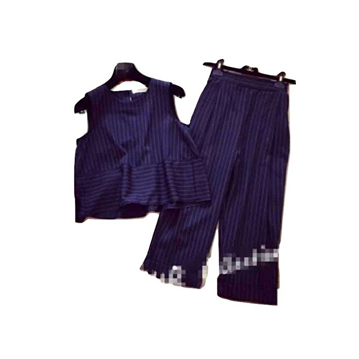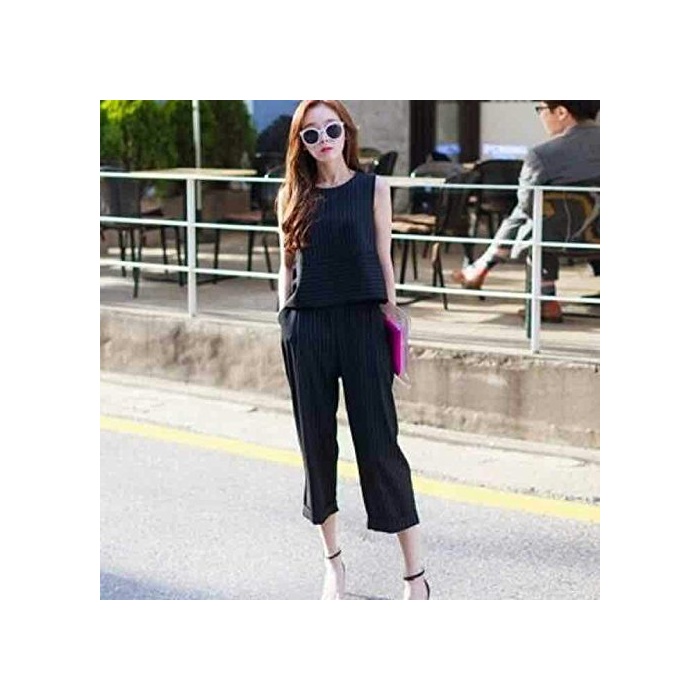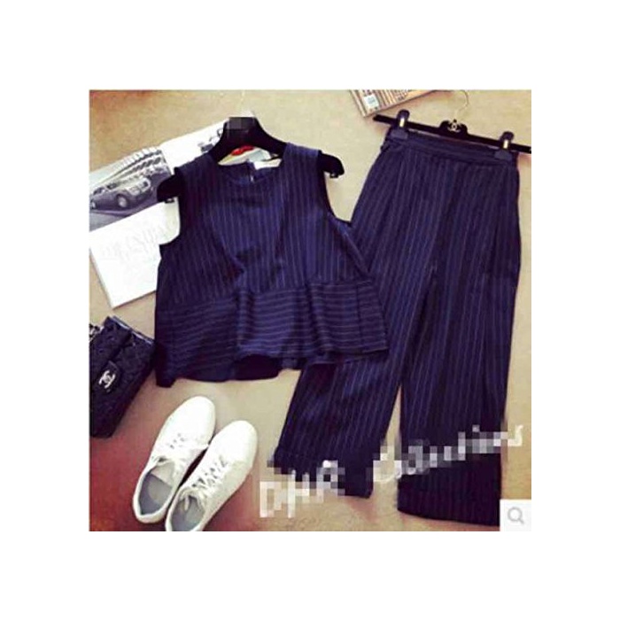 X트라이《푸》 가우쵸 팬츠 와이드 팬츠 프릴 흰색 화이트 검정 블랙 상하 셋업 all in one풍7 분키 바지 수없음 노슬리브 껴입은 옷 배 플럼 톱스 줄무늬 세로의 줄무늬 가는