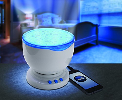 LIGHT SHOW ON YOUR CEILING - Project a soothing, shape-shifting pattern on your bedroom or bathroom ceiling. This cool bedroom light lets you enjoy the magic of light and sound in the comfort of your home. Play music from any smartphone or computer with a 3.5mm headphone output with the included cable. Volume controls on the unit let you adjust the perfect level of background soothing sounds or any music you choose.