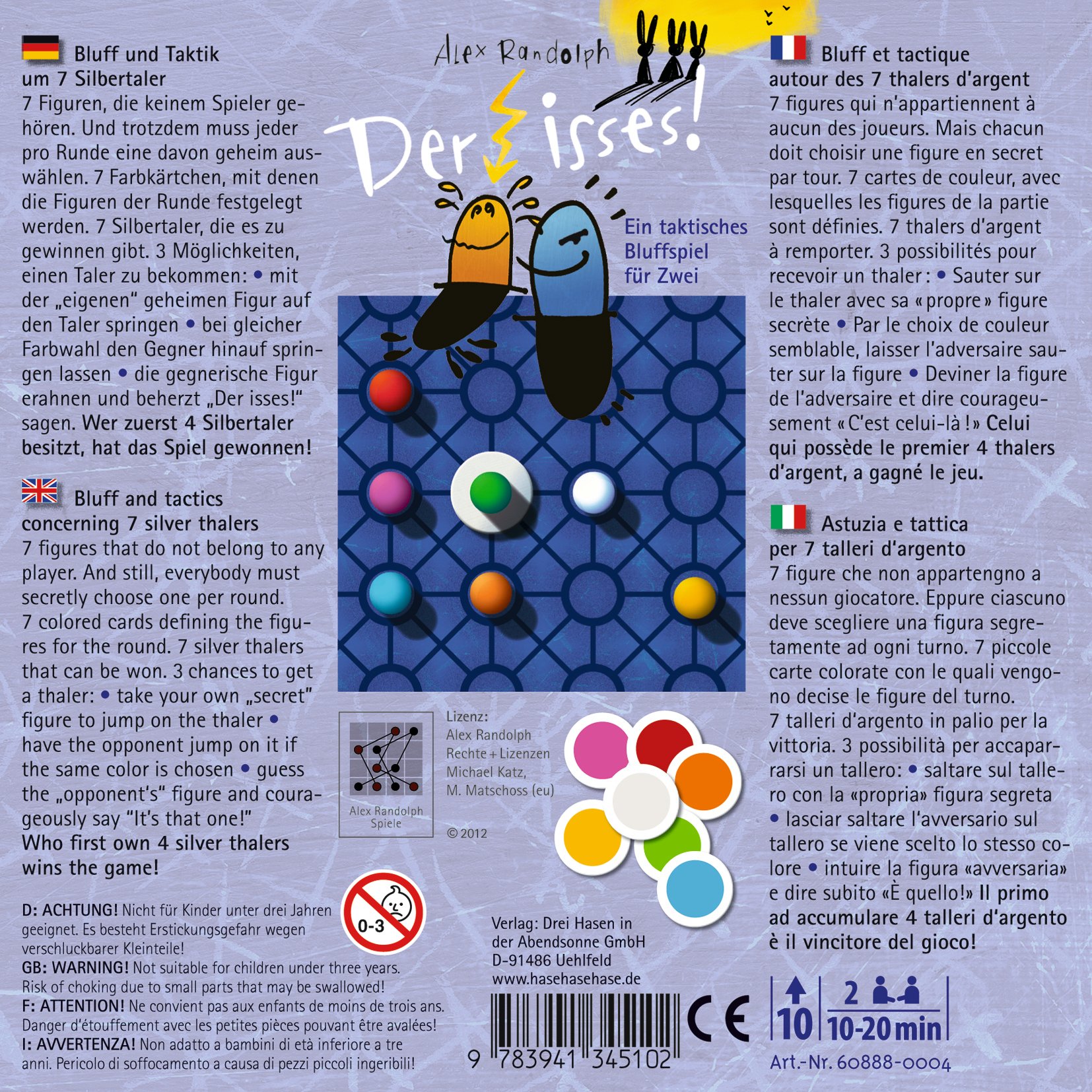 · Number of players: 2 play time: 20 minutes Target age: over 10 years old · Alex Randolph's masterpiece game for two players "Tseveveo" a long-awaited remake!