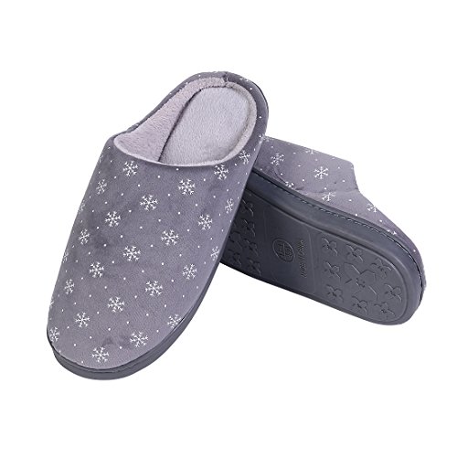 -. Binding : Apparel -. Brand : Shevalues -. Department : womens -. Feature : Resilient memory foam molds to the contours of your feet for ultra comfort / Washable cotton-blend terry provides a soft, breathable comfort / Soft furry inner make your feet warm in autumn and winter / Soft TPR soles give you safe, secure footing on any indoor surface / Cute snowflake design for casual daily wear, best winter christmas home decoration. -. ProductGroup : Shoes -. ProductTypeName : SHOES -. Title : Soft Winter Autumn House Slippers Women's Snowflake Stripes Clog Slippers Memory Foam Fuzzy Home Slippers