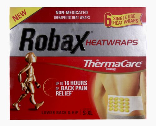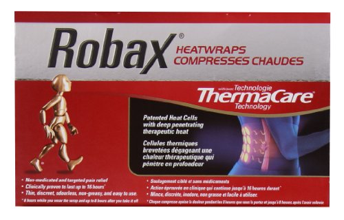 -. Binding : Health and Beauty -. Brand : Robax -. Feature : 6 Single use heat wrap; up to 16 hours of back pain relief / Patented Heat Cells with deep penetrating therapeutic heat / Non-medicated and targeted pain relief / Clinically proven to last up to 16 hours (8 hours while you wear the wrap and up to 8 hours after you take it off) / Thin, discreet, odourless, non-greasy, and easy to use -. IsAdultProduct : 0 -. Label : Robax Heat -. Manufacturer : Robax Heat -. PackageQuantity : 1 -. ProductGroup : Health and Beauty -. ProductTypeName : HEALTH_PERSONAL_CARE -. Publisher : Robax Heat -. Studio : Robax Heat -. Title : Robax heatwraps Pack of 6