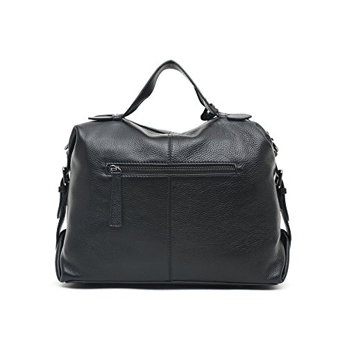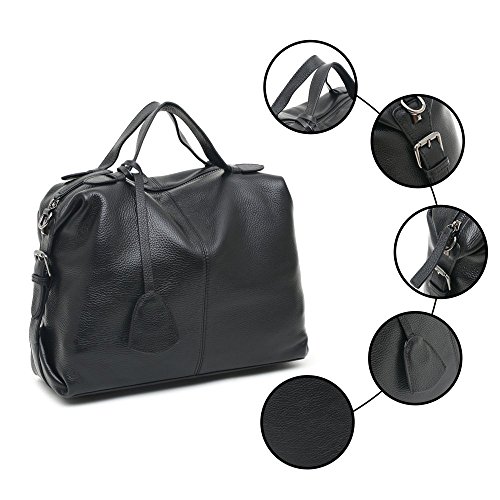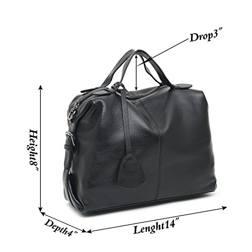 -. Feature : High-quality genuine soft leather,fabric lining,dark gray hardware. / Zipper closure,18-21 inch drop adjustable shoulder strap,8"drop top handle. / Roomy internal:1 main compartment with 1 inside wall zip pocket and 1 inside wall slip pocket,1 small zip compartment and 1 small open compartment. External organization:1 back zipper pocket,6"drop top-handle,adjusted buckles and snaps on two sides of the bag. / Comfortably holds an iPad,a wallet,a umbrella,a small cosmetic bag. / Size:14"x4"x 8"inch;Weight:1.5 lb