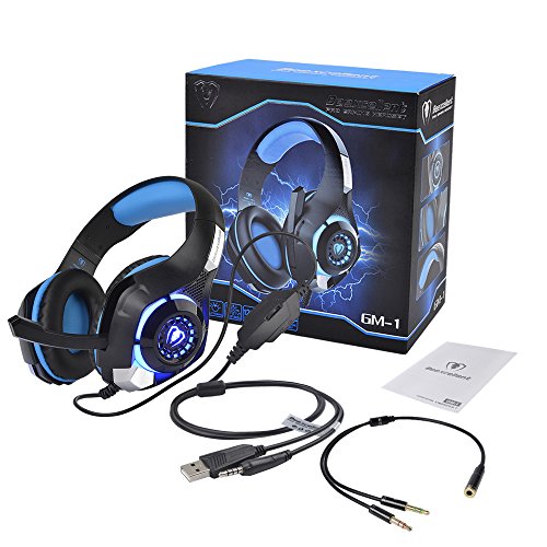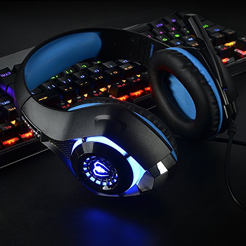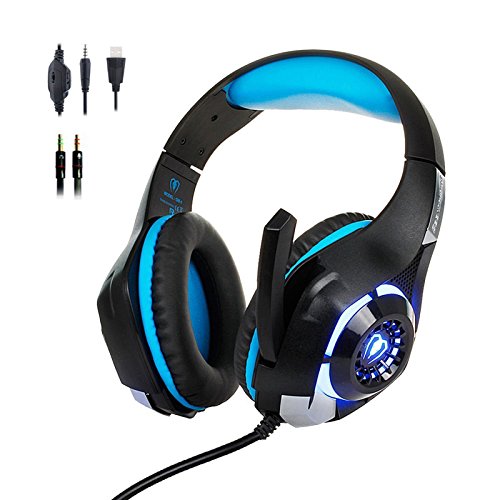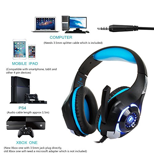 Beexcellent Gaming Headset with Mic, PS4 PC Gaming Headphones Surround Sound/Noise Reduction/Stereo Computer Bass Earphone - Volume Control LED Light for New Xbox One/PlayStation 4/Laptop/Smartphone