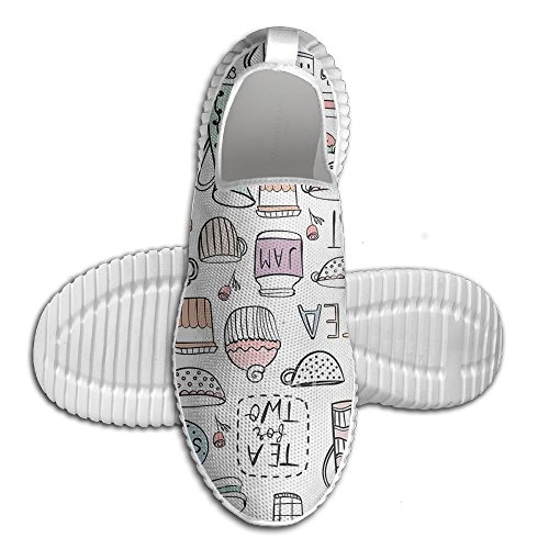 (S A)/Men's/Athletic Outdoor/DIRECT FROM USA/Running Shoes Breakfast Time Pattern Lightweight Breathable Sneakers Athletic Casual Walking Sh...