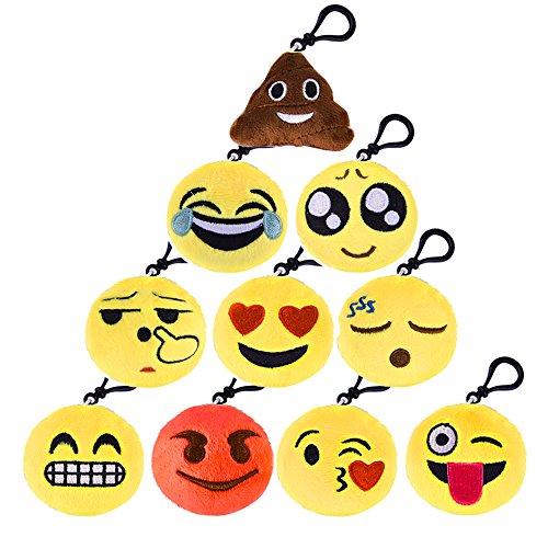 Studio : KUUQA Publisher : KUUQA Binding : Toy Product Description Kuuqa 2 Inch Mini Emoji Plush Key chains,Set of 10. Lovely cute toy precent for children, funny decoration that can be used to decorate your home or car.