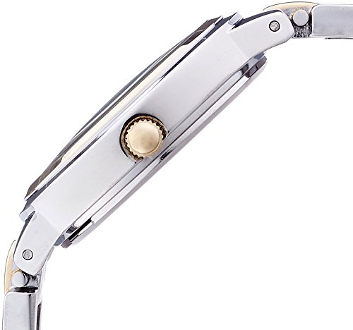 - Feature : Round dress watch with silver-tone bracelet band featuring gold-tone lugs, bezel, and hour markers / Japanese-quartz movement with analog display and protective mineral crystal dial window / Features silver-tone dial with matte outer zone / Features jewelry-clasp closure / Water resistant to 99 feet (30 M): withstands rain and splashes of water, but not showering or submersion