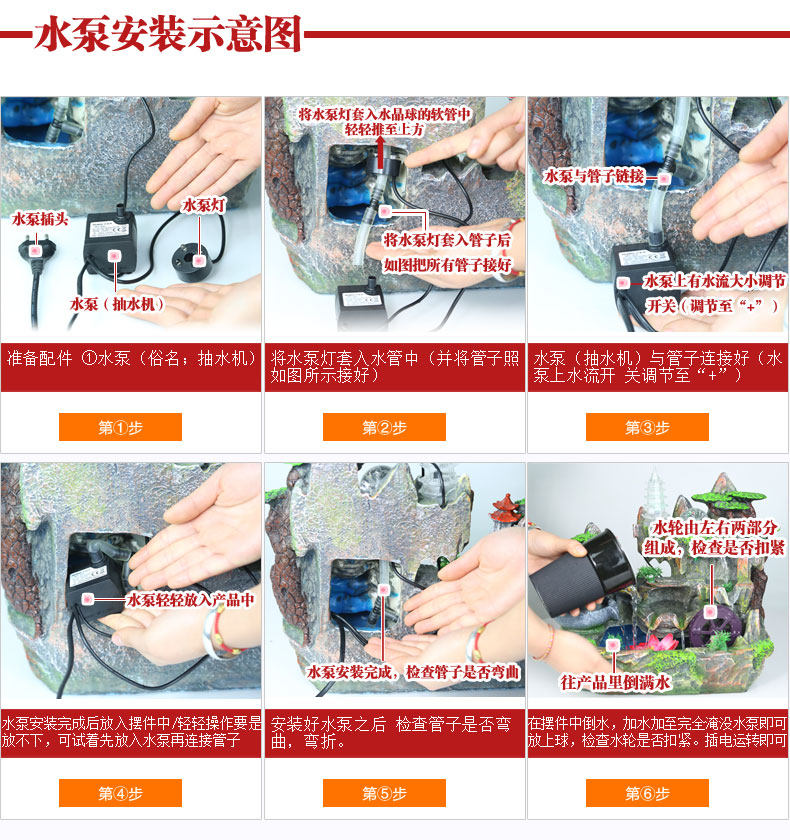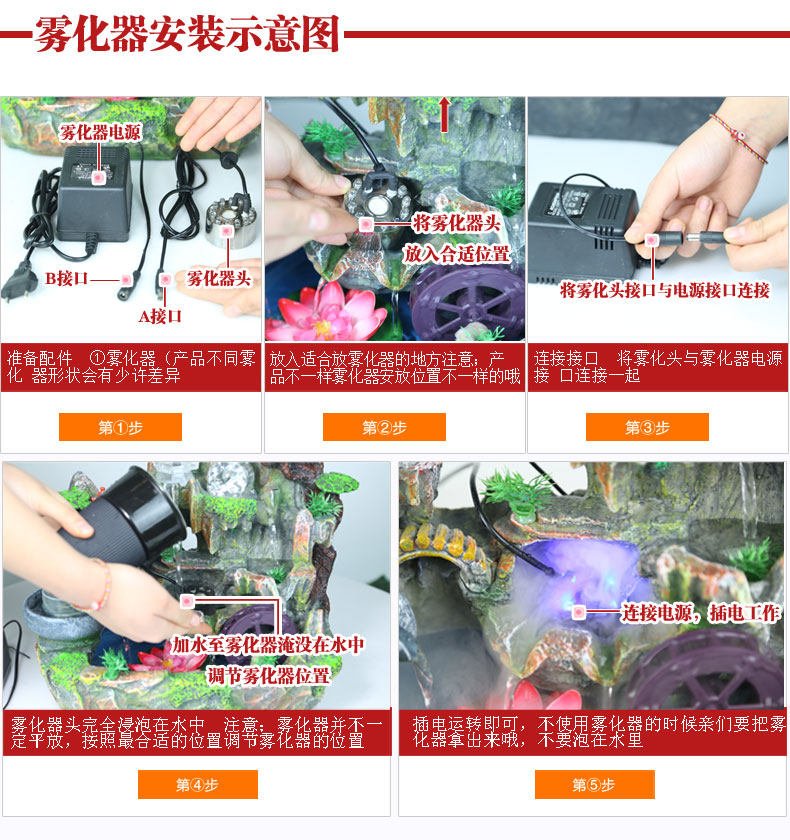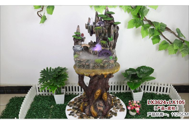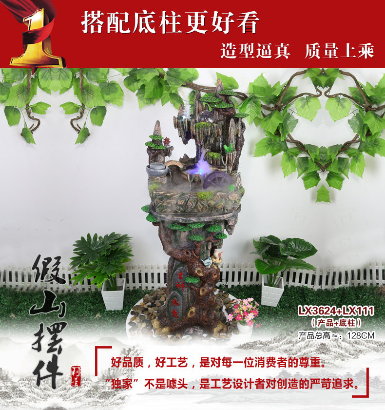 假山流水喷泉招财风水轮加湿器家居装饰工艺礼品客厅办公室小摆件