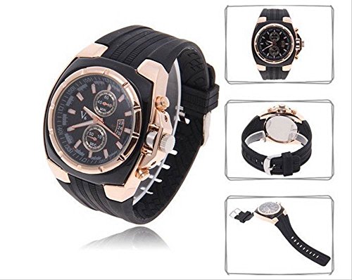 -. Feature : イミテーションクロノグラフ(デザインタイプ)がかっこいいアナログウォッチです。シンプルなデザインですのでビジネスでもオフスタイルにも合わせやすいのが特徴☆ / ゴールドとシルバーの装飾ベゼルで高級感があります。ベゼルもシリコンタイプで使いやすさ抜群。 / エレガントで高級感抜群!薄型タイプなので着こなしを選ばないシンプルなクォーツムーブメントの腕時計です☆ / 【素材】ステンレス、ラバー 【付属品】BOX 時計拭き / 【ご注意】クロノグラフ・日付は見た目重視のイミテーション・デザインのため機能しませんのでご注意ください。 あくまでデザインウォッチとしてご活用ください。 この輸入商品は時計の計時機能のみで、取り扱い説明書、保証書はありません。