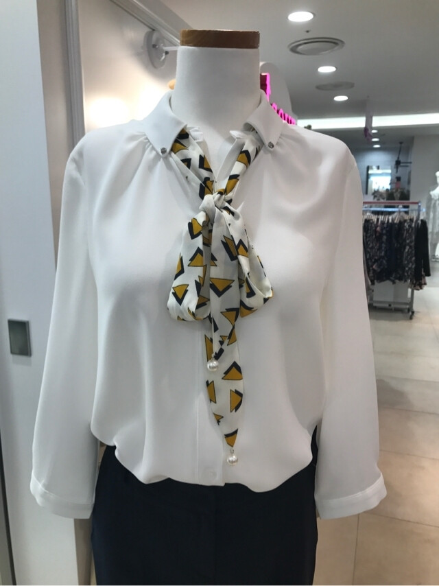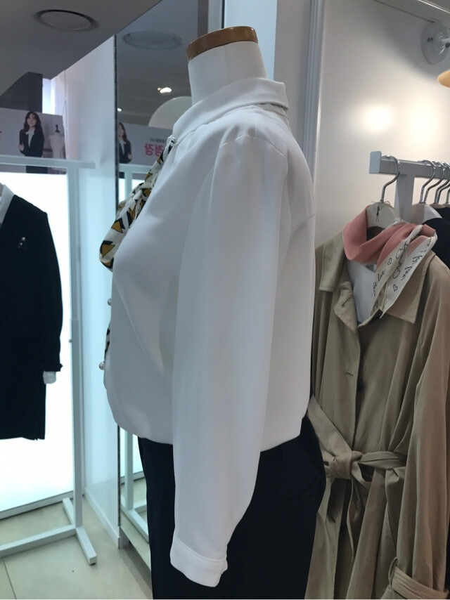 브이넥으로된 카라가있는 블라우스입니다