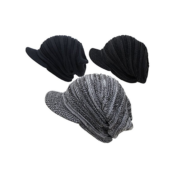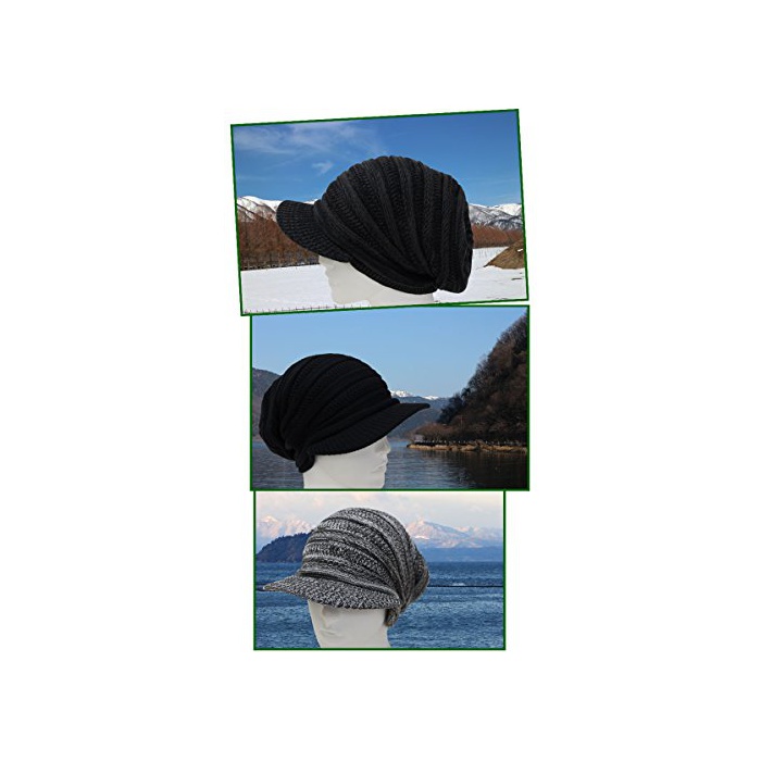 (exa-《스》)EXAS 와이드 바이저《즈바》부착 니트모(니트 모자 《다무왓치》) 블랙 그레이 믹스
